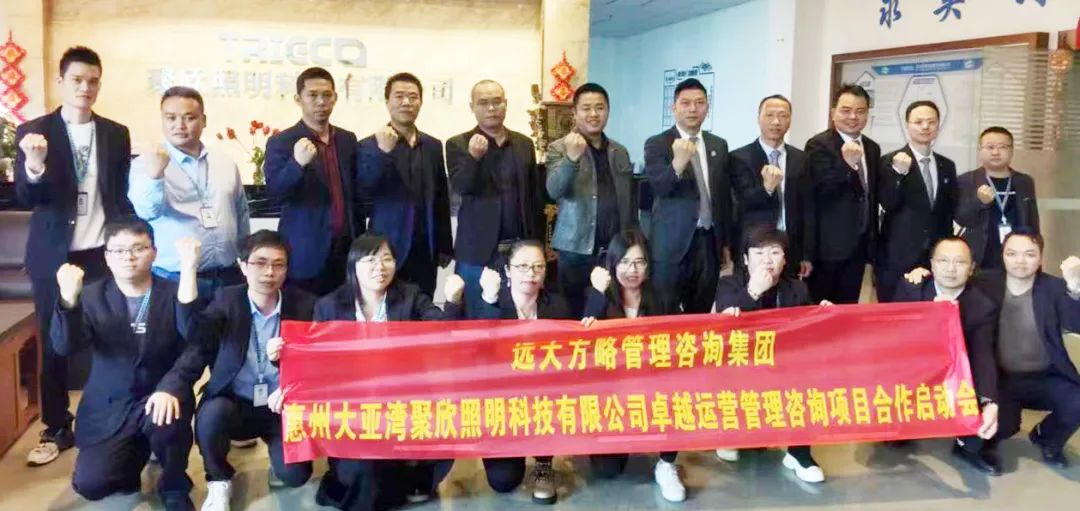 惠州大亞灣聚欣照明科技有限公司(以下簡(jiǎn)稱(chēng)“聚欣照明”)攜手遠(yuǎn)大方略開(kāi)啟《卓越運(yùn)營(yíng)管理》咨詢(xún)項(xiàng)目,加強(qiáng)組織建設(shè),優(yōu)化運(yùn)營(yíng)管理體系,提升內(nèi)部管理能力,助推企業(yè)持續(xù)健康發(fā)展。