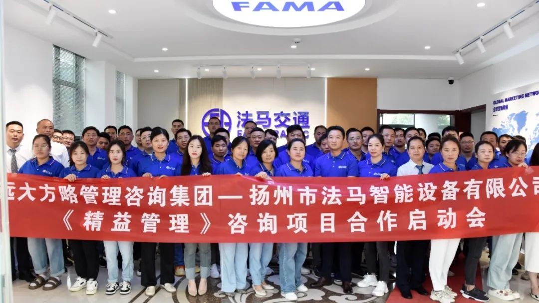 揚(yáng)州市法馬智能設(shè)備有限公司(以下簡(jiǎn)稱“法馬交通”)攜手遠(yuǎn)大方略啟動(dòng)《精益管理》咨詢項(xiàng)目。優(yōu)化生產(chǎn)管理流程,提升工作效率,降低綜合成本,增強(qiáng)核心競(jìng)爭(zhēng)力。