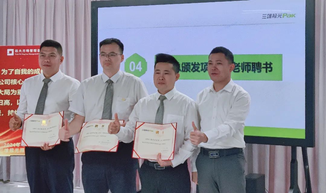隨后,唐總為遠(yuǎn)大方略項(xiàng)目組老師頒發(fā)聘書,聘請項(xiàng)目組老師為此次項(xiàng)目改善的指導(dǎo)老師,全面推動此次項(xiàng)目開展。