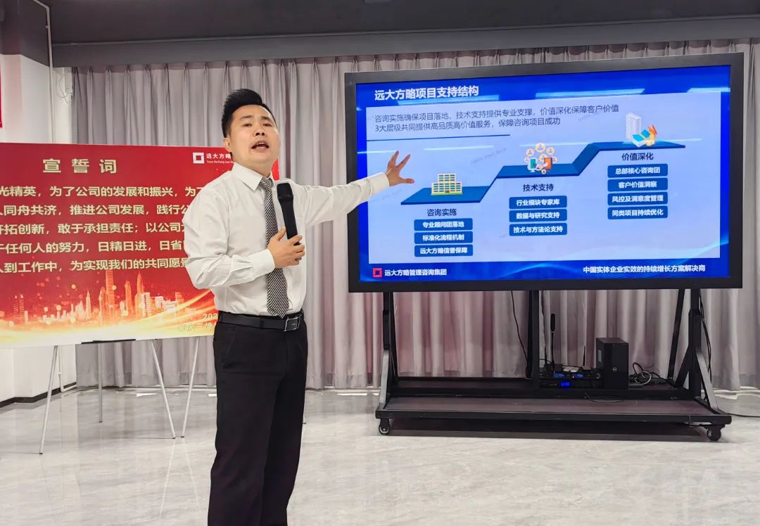 啟動會上,項(xiàng)目組老師首先向三雄極光對遠(yuǎn)大方略的信任與支持表示感謝,隨后老師分析了目前的市場環(huán)境,表示市場內(nèi)卷加速,想要在市場競爭中持續(xù)保持競爭優(yōu)勢,企業(yè)需要練內(nèi)功,全面開啟降本增效,推動企業(yè)高質(zhì)量發(fā)展。