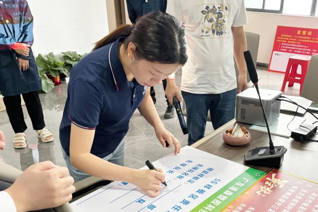 隨后,變革小組各模塊負責(zé)人簽訂了責(zé)任狀并作了表態(tài)發(fā)言。方總帶領(lǐng)大家簽下誓言并集體宣誓,鼓勵全員投身變革,為自我發(fā)展創(chuàng)造更好的環(huán)境,為公司的高質(zhì)量發(fā)展增添助力。