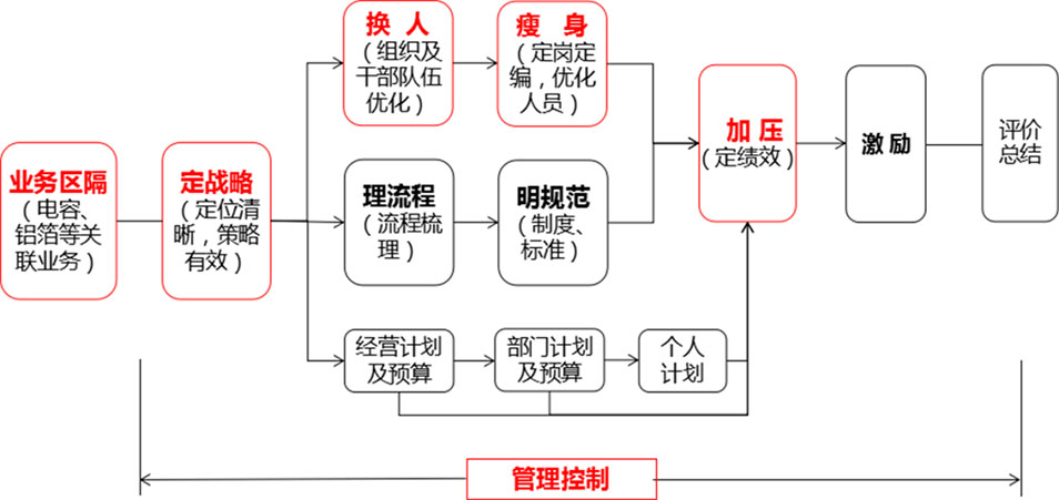 2、從戰(zhàn)略到運營,從業(yè)務(wù)區(qū)隔、組織體系、運營流程到管理控制全方位變革,獲取公司持續(xù)發(fā)展動力。