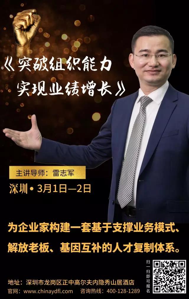 如果您認(rèn)可“先人后事”的理念,或者想進(jìn)一步了解企業(yè)核心圈構(gòu)建、人才營(yíng)盤(pán)打造、人才生產(chǎn)線建立等相關(guān)內(nèi)容,歡迎參加遠(yuǎn)大方略聯(lián)合創(chuàng)始人雷志軍導(dǎo)師3月1日、2日在深圳的《突破組織能力,實(shí)現(xiàn)業(yè)績(jī)?cè)鲩L(zhǎng)》的組織突破專(zhuān)題課,我們一起探討,相互交流,期待您的光臨。