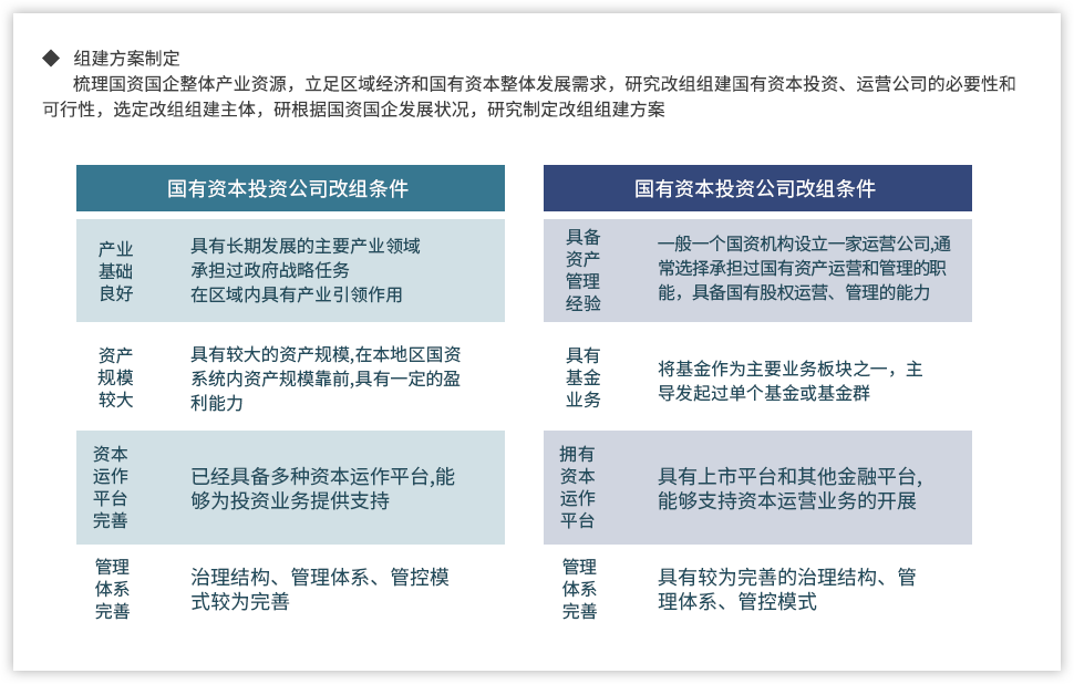 從頂層政策設(shè)計和基層改革實踐兩大維度梳理國有資本投資、運營公司的改革發(fā)展歷程,分析兩類公司發(fā)展趨勢。跟蹤對比中央和地方關(guān)于國有資本投資、運營公司的政策文件,把握兩類公司改革現(xiàn)狀,明確國有資本投資、運營公司發(fā)展定位、發(fā)展目標和戰(zhàn)略布局要求。