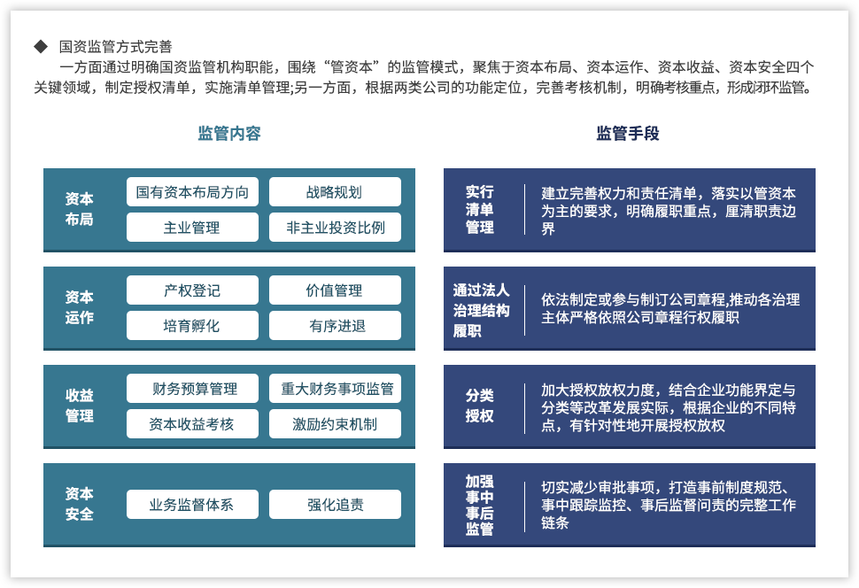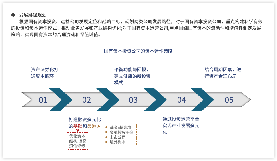 為了更好推動國有資本投資、運營公司,提升國有資本運營能力,遠大方略認為,需要進一步明確國有資本投資、運營公司的定位,基于國有資本整體視角進行產(chǎn)業(yè)和業(yè)務(wù)的戰(zhàn)略定位,并通過強化企業(yè)內(nèi)部管理,提升國有資本的運營效率。