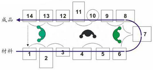 生產(chǎn)同步化的理想狀態(tài)是工件在各工序間一個一個生產(chǎn)、一個一個往下一道工序傳遞,直至總裝線,即單件生產(chǎn)、單件流動。工廠中有各種各樣的工序,為了實現(xiàn)全部生產(chǎn)過程的同步化,需要根據(jù)這些工序的特點,使批量盡量縮小,朝理想的“1個流”靠攏。但這樣一來,作業(yè)切換就會變得很頻繁。