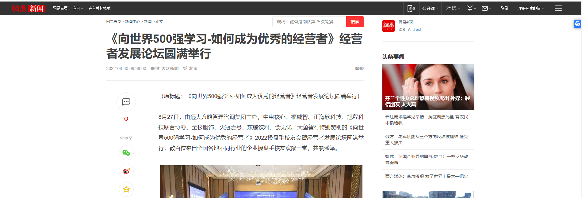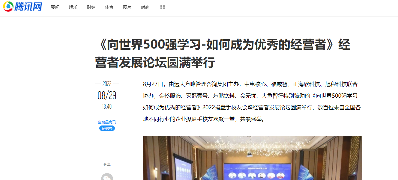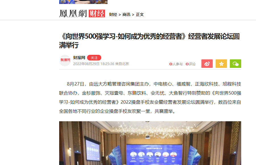 鳳凰網(wǎng)等媒體報(bào)道:《向世界500強(qiáng)學(xué)習(xí)-如何成為優(yōu)秀的經(jīng)營者》經(jīng)營者發(fā)展論壇圓滿舉行