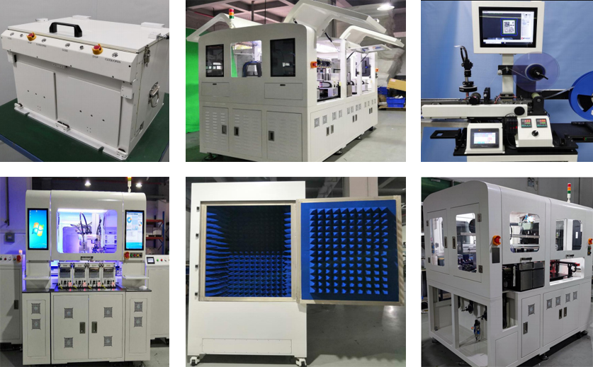 公司產(chǎn)品分為屏蔽箱系列和自動(dòng)化系列兩個(gè)模塊,包括2.4G/5.8G、5G毫米波等廠(chǎng)測(cè)與實(shí)驗(yàn)室測(cè)試用各類(lèi)RF/AF手/自動(dòng)、屏蔽隔音箱和混響室;及以無(wú)線(xiàn)產(chǎn)品自動(dòng)測(cè)試為主的四軸無(wú)線(xiàn)模塊自動(dòng)測(cè)試機(jī)、直線(xiàn)運(yùn)動(dòng)模組型自動(dòng)測(cè)試機(jī)、智能視覺(jué)編帶機(jī)、PCBA自動(dòng)貼標(biāo)機(jī)、鼠標(biāo)自動(dòng)測(cè)試ATE、無(wú)線(xiàn)IC模塊自動(dòng)燒錄測(cè)試一體機(jī)、CCD視覺(jué)自動(dòng)篩選分揀機(jī)等。