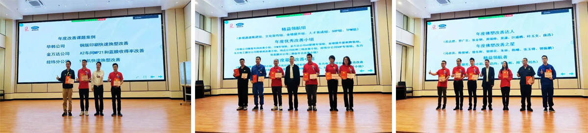表彰先進(jìn)樹標(biāo)桿,凝心聚力謀新篇。會(huì)議上對在一期精益管理項(xiàng)目中表現(xiàn)優(yōu)異的團(tuán)隊(duì)及個(gè)人進(jìn)行了表彰,鼓勵(lì)全體佛塑精益人再接再厲,精益求精,不斷前進(jìn)。