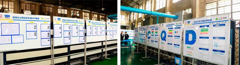 企業(yè)生產(chǎn)管理規(guī)范化、標(biāo)準(zhǔn)化才能實(shí)現(xiàn)精細(xì)化,佛塑科技通過精益管理變革全面推行6S管理,建立了各類6S及可視化管理制度、流程、標(biāo)準(zhǔn)以及工具,共復(fù)制改造近200個(gè)6S區(qū)域;項(xiàng)目施行領(lǐng)導(dǎo)“走動(dòng)式管理”調(diào)動(dòng)了員工積極性,快速、全面地掌握生產(chǎn)的最新信息,提高決策的科學(xué)性和正確性,現(xiàn)場解決一線操作問題,提升了企業(yè)效率;建立SOP標(biāo)準(zhǔn)操作程序,完成100+關(guān)鍵崗位SOP編制,生產(chǎn)效率提升5%,換膜時(shí)間降低50%。