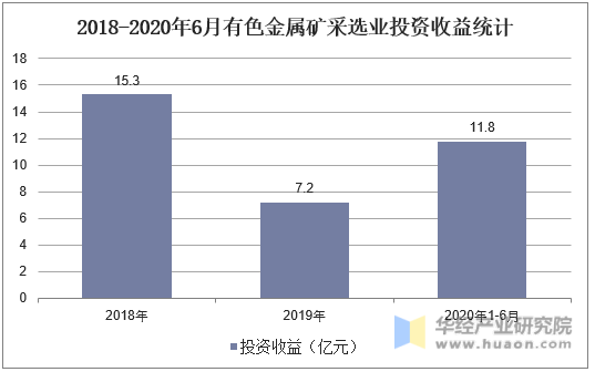 2018-2020年6月有色金屬礦采選業(yè)投資收益統(tǒng)計