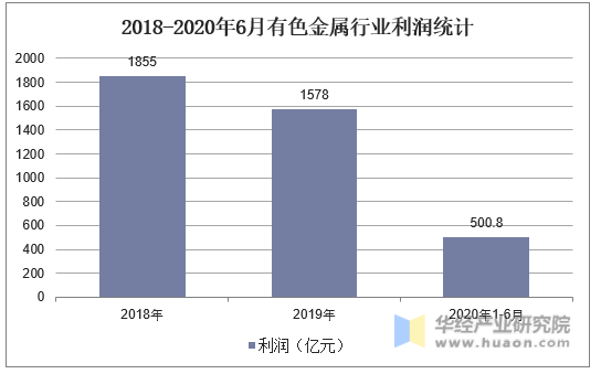 2018-2020年6月有色金屬行業(yè)利潤統(tǒng)計