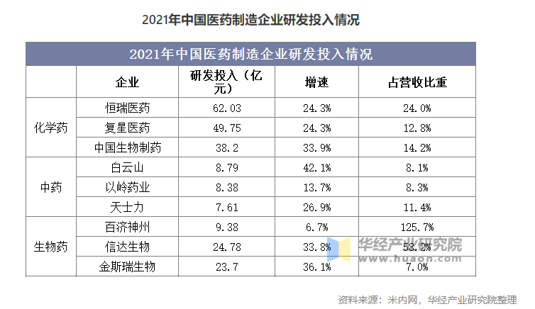 隨著藥品審評審批制度改革、國家醫(yī)保常態(tài)化調(diào)整等政策改革,“創(chuàng)新”逐漸成為藥企的發(fā)展理念?;瘜W(xué)制藥行業(yè)正在發(fā)生結(jié)構(gòu)性變化,隨著仿制藥出現(xiàn)藥品價格持續(xù)下降的同時,行業(yè)集中度也有望提升;中醫(yī)藥行業(yè)政策利好不斷,相關(guān)部門從市場準(zhǔn)入、醫(yī)保支付、審評審批等多個維度對中醫(yī)藥行業(yè)形成政策支撐,中藥原材料價格上漲對企業(yè)決策也造成一定的影響;生物藥雖然起步晚于化學(xué)藥,但近年來卻受全球藥企熱捧,成為藥企和投資者競爭的新方向,研發(fā)投入力度較大。
