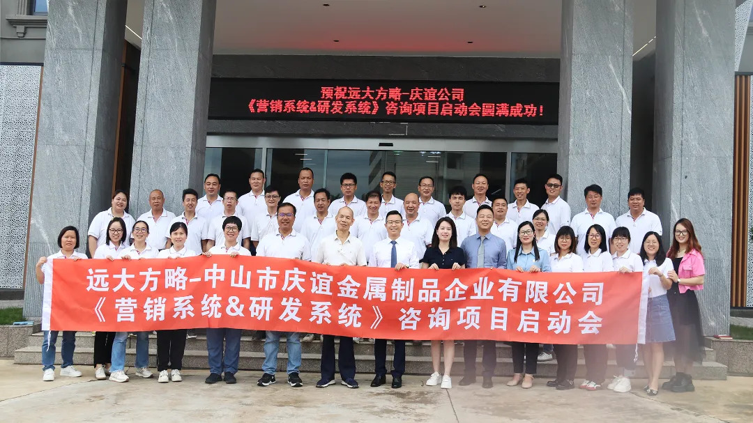 ‌        營銷和研發(fā)相輔相成,‌共同推動企業(yè)的發(fā)展。‌近日,中山市慶誼金屬制品企業(yè)有限公司(以下簡稱“慶誼金屬制品”)攜手遠大方略啟動《營銷系統(tǒng)&研發(fā)系統(tǒng)》咨詢項目,提高產(chǎn)品的市場競爭力,‌加快產(chǎn)品上市時間,‌更好地滿足客戶需求,‌提升客戶滿意度,助力企業(yè)持續(xù)增長。