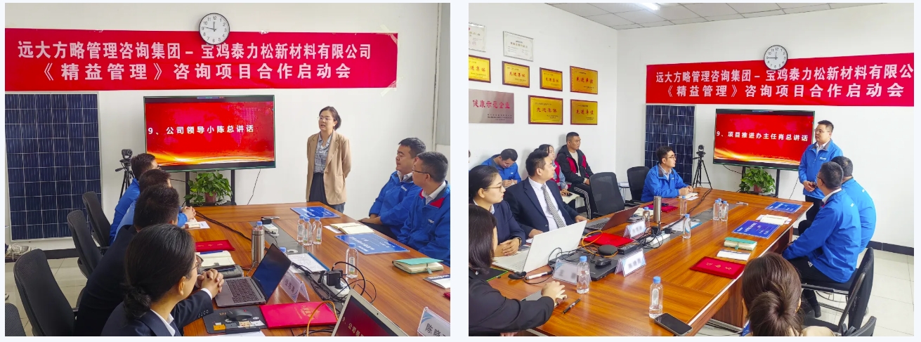 持續(xù)改善,邁向卓越。近日,泰力松再次攜手遠(yuǎn)大方略開(kāi)啟管理變革,暨西安泰力松、金壇分公司相繼與遠(yuǎn)大方略展開(kāi)《運(yùn)營(yíng)管控與組織能力提升》、《精益管理》咨詢(xún)項(xiàng)目合作后,此次寶雞泰力松新材料有限公司(以下簡(jiǎn)稱(chēng)“寶雞泰力松”)攜手遠(yuǎn)大方略開(kāi)啟第三期《精益管理》咨詢(xún)項(xiàng)目,幫助企業(yè)建立全員精益思維,搭建科學(xué)合理的精益管理體系,內(nèi)部運(yùn)營(yíng)實(shí)現(xiàn)標(biāo)準(zhǔn)化、規(guī)范化、流程化以及制度化,提升整體運(yùn)營(yíng)效率,推動(dòng)企業(yè)向高質(zhì)量發(fā)展道路邁進(jìn)。