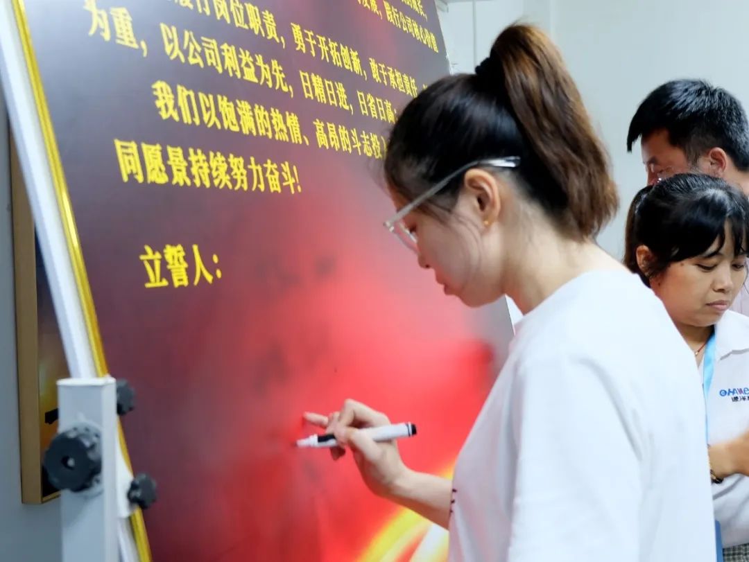 會(huì)上,萬總為項(xiàng)目老師頒發(fā)了授權(quán)書和聘書,帶領(lǐng)項(xiàng)目關(guān)鍵人員在誓詞上簽字并集體宣誓,鼓勵(lì)大家和公司共同成長進(jìn)步。